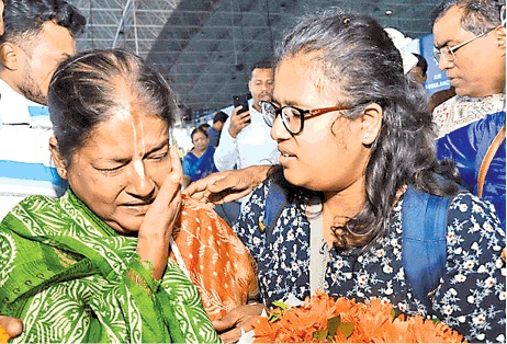 विनीता जैसे ही निकास द्वार के पास पहुंची तो पिता विश्वजीत घोष अपनी बाहें फैलाए बेटी को गले लगाने के लिए आगे बढ़े और विनीता को सीने से लगा लिया। राज्यसभा सदस्य डॉ. महुआ माजी समेत स्वजन ने फूलमाला पहनाकर विनीता का स्वागत किया।