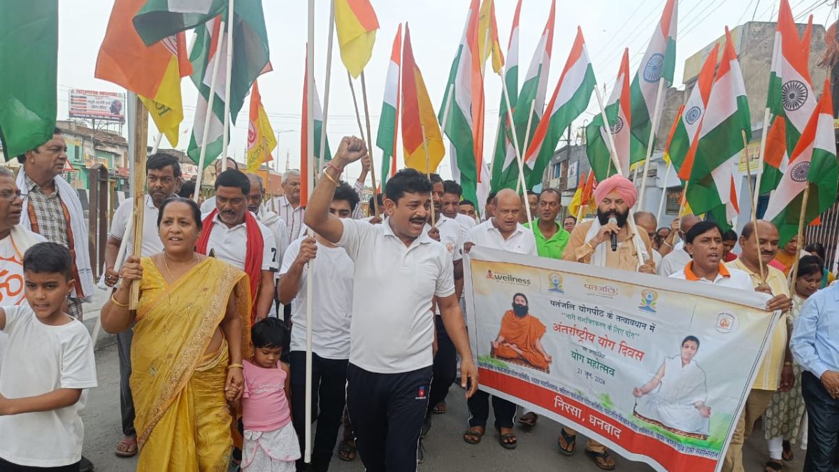 अंतर्राष्ट्रीय योग दिवस के अवसर पर पतंजलि योग समिति एवं भारत स्वाभिमान न्यास निरसा शाखा द्वारा योगासन के पूर्व प्रभात फेरी निकालकर लोगों के बीच योगासन एवं प्राणायाम से होने वाले फायदे के बारे में जन जागरूकता अभियान चलाया।