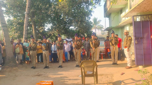 वहीं, शनिवार को उनके पार्थिव शरीर को सीआरपीएफ इंस्पेक्टर किशोर आइनद और जवानों उनके पार्थिव शरीर को लेकर उनके निवास स्थान धूलियार पहुचे जहा गार्ड ऑफ ऑनर देने के पश्चात उनकी पत्नी को तिरंगा झंडा सौंपा गया।