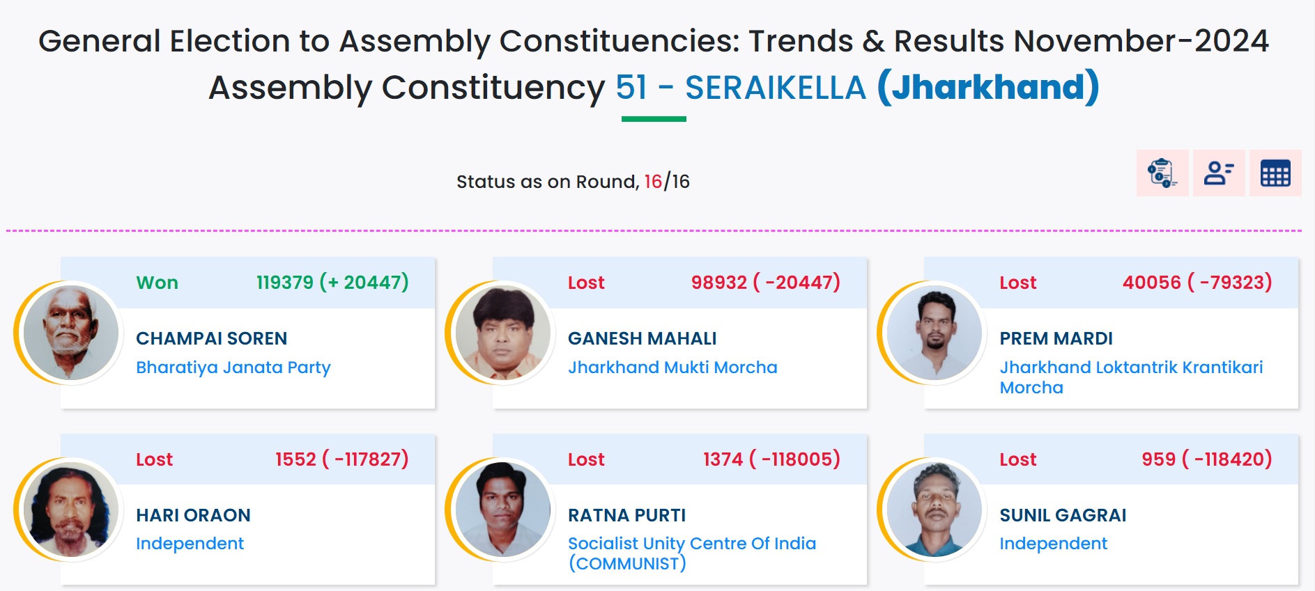 Saraikela Vidhan Sabha Result 2024: चंपई सोरेन ने गणेश महली को दी पटकनी, सरायकेला सीट पर दर्ज की बड़ी जीत