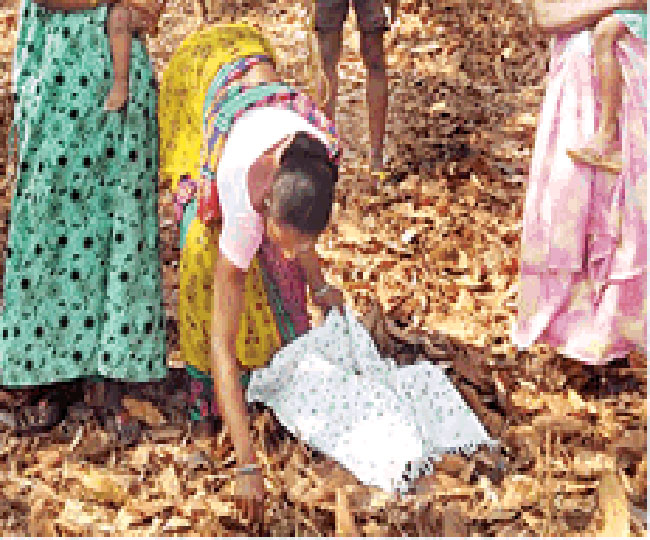 सिमडेगा में चिरौंजी एकत्रित करते आदिवासी।