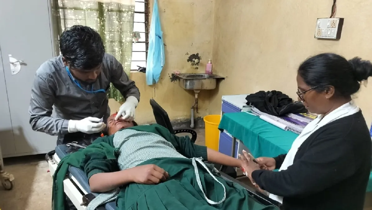 प्राथमिक स्वास्थ्य केंद्र गोइलकेरा में घायल छात्रा का इलाज करते चिकित्सक।