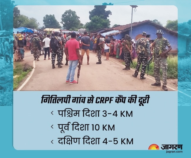 गौरतलब है कि गितिलपी चौक से पश्चिम दिशा में लगभग तीन-चार किलोमीटर दूरी पर सीआरपीएफ का 60 बटालियन वाला कैंप है। पूरब की ओर 10 किलोमीटर बाद सायतवा में सीआरपीएफ का 60 बटालियन कैंप है। इसके अलावा दक्षिण दिशा में भी लगभग चार-पांच किलोमीटर की दूरी पर सीआरपीएफ का कैंप मौजूद है।