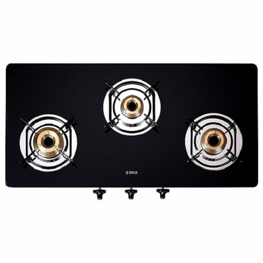 - Elica Vetro Glass Top 3 Burner Gas Stove.