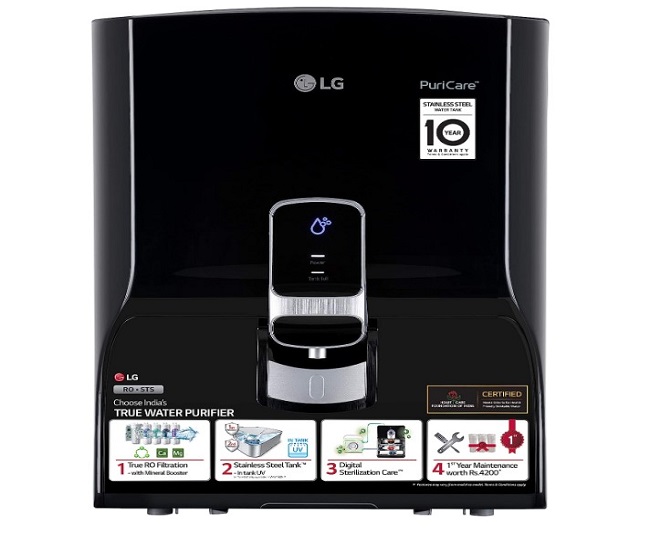 एलजी प्यूरीकेयर वाटर प्यूरीफायर नल के पानी से सभी अशुद्धियों को दूर करने के लिए यह Water Filter For Home आरओ+यूवी तकनीक का उपयोग करता है। यह एक खनिज बूस्टर के साथ आता है जो शुद्ध पानी में आवश्यक मिनरल्स को जोड़ता है।
