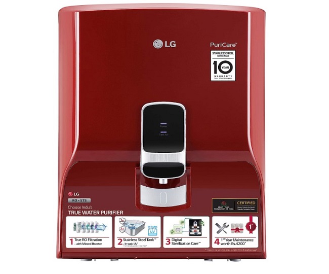 पानी को शुद्ध करने के लिए RO+ UV जैसी तकनीक का प्रयोग यह प्यूरीफायर करता है। यह Alkaline Water Purifier पानी में मौजूद सभी अशुद्धियों को दूर करता है। LG Water Purifier Price: Rs 18,499.