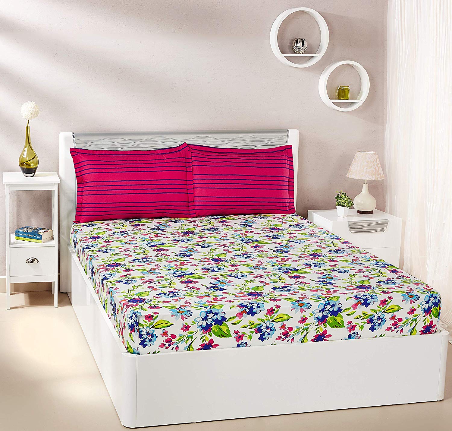 3. Raymond Home Double Bedsheet with 2 Pillow Cover - यह रेमेंड कंपनी का डबल साइज का बेडशीट है। यह मैजेंटा कलर का चादर है। इस प्रोडक्ट की एमआरपी 1,499 रुपये है लेकिन इसे अमेजन से 799 रुपये में खरीदा जा सकता है। Buy From Here