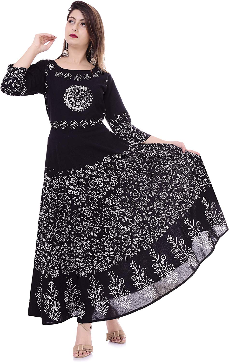 Urban Fab 100% Cotton Block Print Black Maxi Dress for Women with 3/4th Sleeve: बलॉक प्रिंटेड ब्लैक जयपुरी ड्रेस को अमेजन आपको 649 रुपये में बेच रहा है जबकि इसकी MRP-1,499 रुपये है। इसमें स्मॉल से लेकर डबल XL साइज तक मौजूद है। आप इसे कैजुअल, पार्टी और वेडिंग में पहन सकती हैं। आप इसे घर में मशीन में भी वॉश कर सकती हैं या हैंड वॉश भी कर सकती हैं। अमेजन यूजर्स ने इसे 3.8 स्टार दिए है।