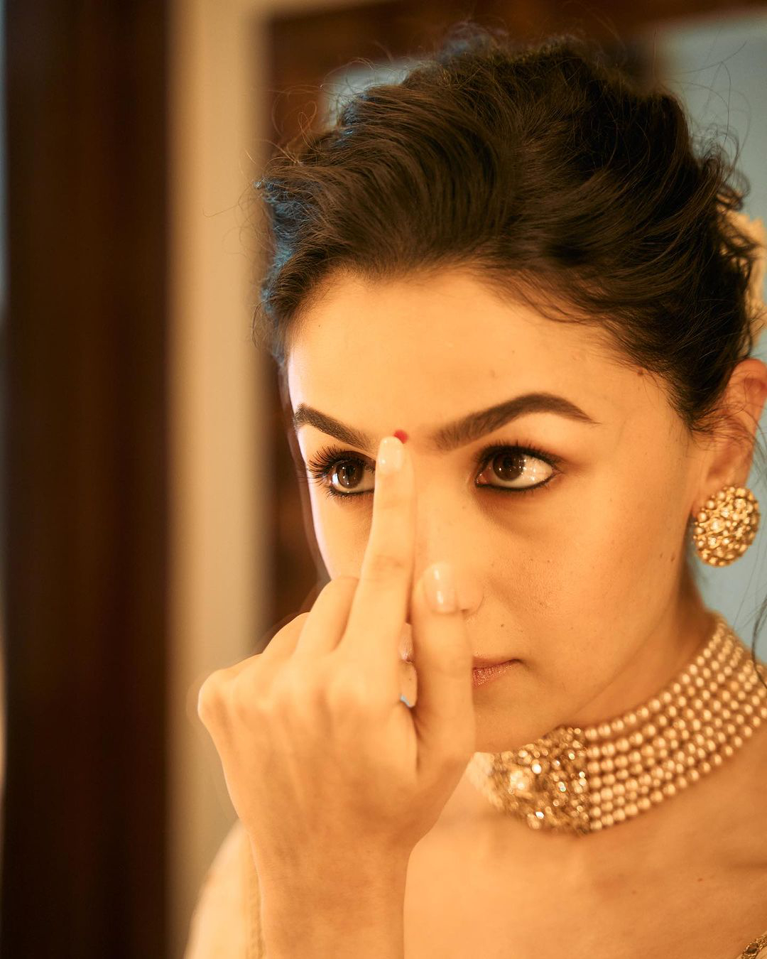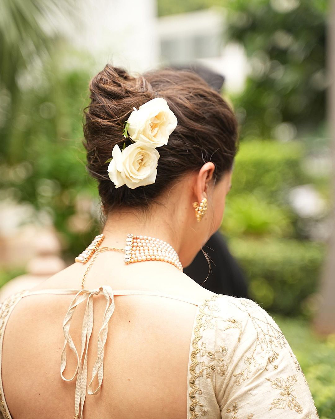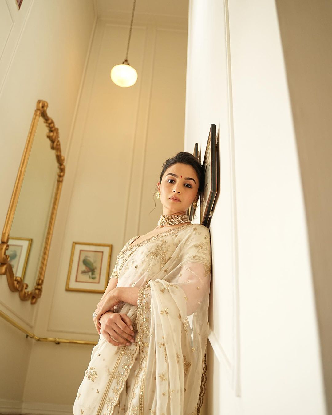 इस इवेंट में आलिया भट्ट का लुक देखने लायक था। आइवरी कलर की ऑर्गेंजा साड़ी में वो बेहद खूबसूरत और एलीगेंट आ रही थीं। साड़ी के साथ उन्होंने बालों का बन बनाया था और उसे व्हाइट गुलाब से सजाया था। गले में चोकर, मैचिंग ईयररिंग्स और मिनिमल मेकअप के साथ आलिया ने अपने इस लुक को पूरा किया था।