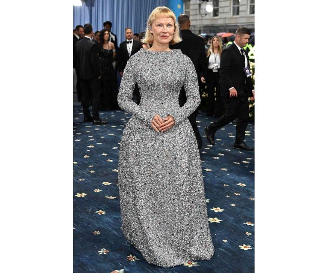 एंडरसन जब टोरी बर्च के क्रिस्टल से जड़े गाउन में रेड कार्पेट पर आईं, तो उन पर से नजरें हटाना मुश्किल था। वह गाउन चांदी के रंग का था, उसमें लंबी आस्तीनें थीं और वह काफी घेरदार था। उन्होंने अपने बालों को भी एक नए, सुनहरे बॉब कट में स्टाइल किया था।