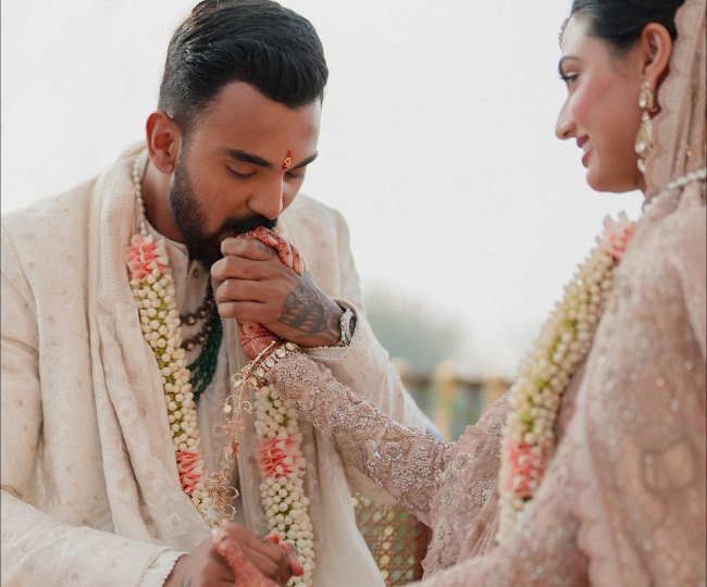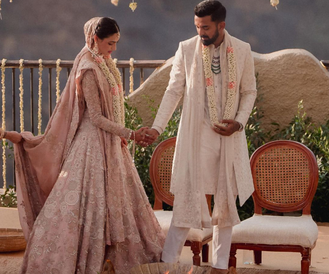 नई दिल्ली, लाइफस्टाइल डेस्क। Athiya Shetty KL Rahul Wedding: एक्ट्रेस आथिया शेट्टी और क्रिकेटर केएल राहुल शादी के बंधन में बंध चुके हैं। क्रिकेटर केएल राहुल और आथिया शेट्टी दोनों का परिवार ही इस शादी को प्राइवेट रखना चाहता था इसलिए इनकी शादी में दोनों के परिवार के अलावा सिर्फ इनके करीबी दोस्त ही मौजूद थे। शादी में आथिया का लुक रहा बेहद खास। ब्लश पिंक चिकनकारी लहंगे में आथिया लगीं बलां की खूबसूरत और उनका ये लहंगा पूरे 10,000 घंटों में बनकर तैयार हुआ है।