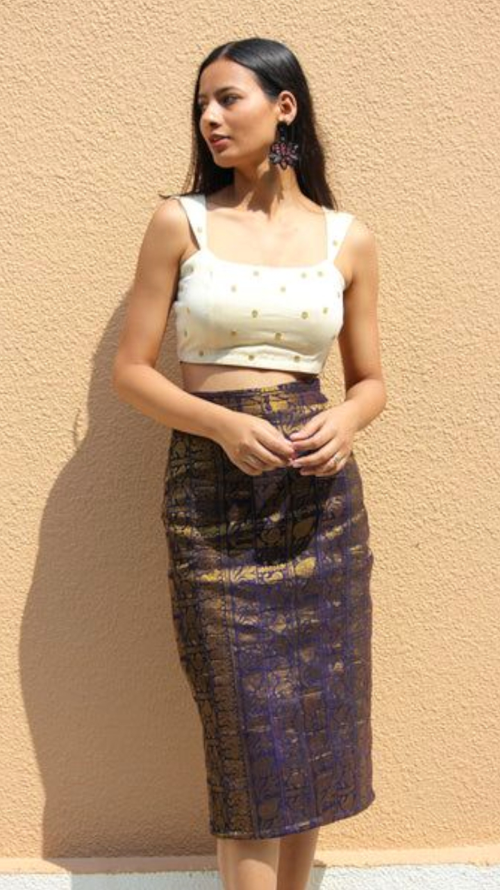 ब्रोकेड फैब्रिक से आप स्कर्ट भी बनवा सकती हैं। जिसे आप सिंपल टॉप के साथ भी पहनेंगी, तो नो डाउट बहुत स्टाइलिश लगेंगी। ब्रोकेड के लॉन्ग स्कर्ट तो आमतौर पर मिल जाते हैं लेकिन शॉर्ट स्कर्ट शायद नहीं। इस तरह के स्कर्ट छोटे-मोटे इवेंट के लिए हैं बेस्ट।