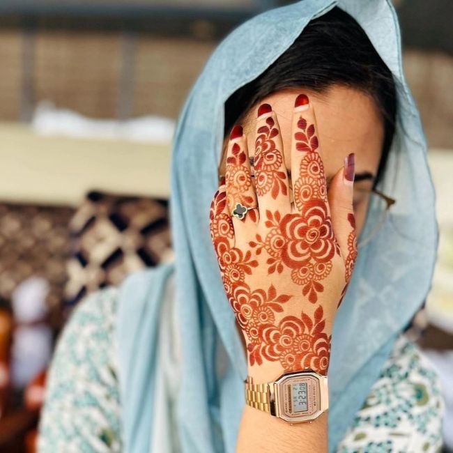 मेहंदी का यह फ्लोरल डिजाइन आपके हाथों को बेहद खूबसूरत बनाएगा। हालांकि, यह भी एक मिनिमल डिजाइन है, लेकिन इससे भी आपके हाथों पर ऐसा लगेगा, जैसे आपने हथेलियों को भरकर मेहंदी लगाई है। आड़े-टेढ़े डिजाइन बनाने की वजह से यह देखने में काफी सुंदर लगती है।