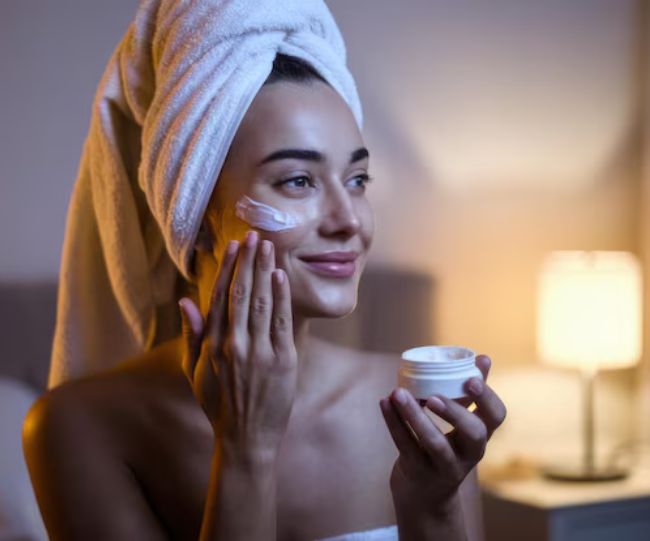 रात को मॉइस्चराइजर लगाना बिल्कुल ना भूलें। यह स्किन को सॉफ्ट, हाइड्रेटेड और ग्लोइंग बनाए रखता है। हाइलूरोनिक एसिड, एलोवेरा या ग्लिसरीन युक्त मॉइस्चराइज़र स्किन को रातभर नमी देकर सवेरा बनाता है खूबसूरत।