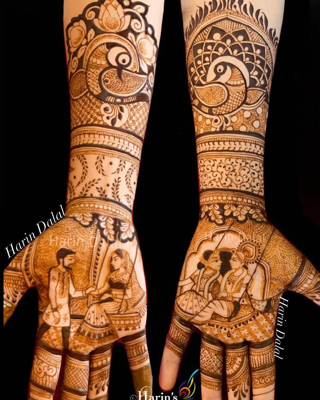 व्रत रखने वाली सुहागिन महिलाओं के हाथों पर इस तरह की मेहंदी भी खूब अच्छी लगेगी। आपके पिया आपकी तारीफ करते नहीं थकेंगे। ये डिजाइन इन दिनों खूब ट्रेंड में हैं।