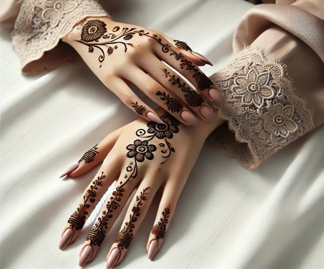 अगर आप सिंपल लेकिन क्लासी मेहंदी डिजाइन की तलाश में हैं, तो अरेबिक स्टाइल मेहंदी से बेहतर कोई विकल्प नहीं हो सकता। खास बात यह है कि इसे लगाने में ज्यादा मेहनत भी नहीं करनी पड़ती और यह बहुत जल्दी बन जाती है। इसमें फ्लोरल पैटर्न्स और बेलों का खूबसूरत कॉम्बिनेशन होता है, जो हाथों पर बेहद आकर्षक लगता है।