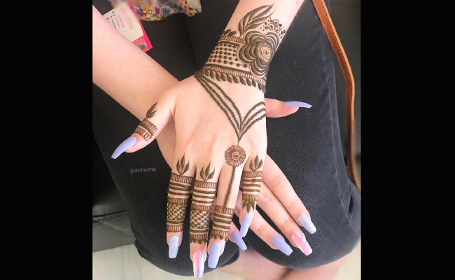 हथेलियों का बैक ज्यादा हाइलाइट होता है तो आप पूरे हाथों को इस तरह की डिज़ाइन से भर सकती हैं जो बहुत ही खूबसूरत लुक देंगी। फ्लोरल से लेकर जाली, बेल हर तरह के पैटर्न इसे खूबसूरत बनाने के लिए किया जा सकता है इस्तेमाल।
