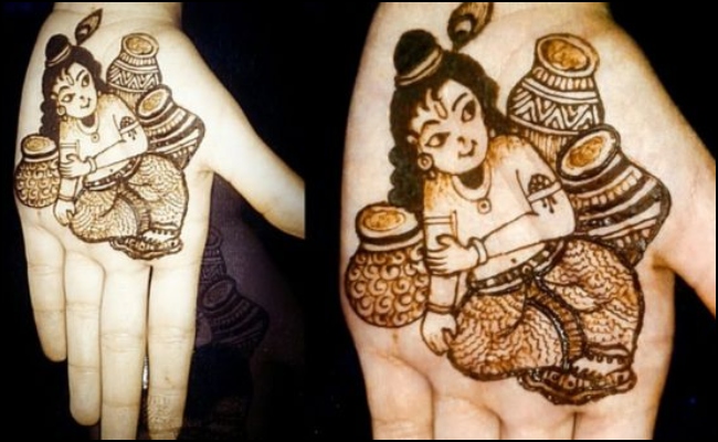 जन्माष्टमी के मौके पर हर जगह दही हांडी का नजारा देखने को मिलता है। ऐसे में अगर आप जन्माष्टमी के लिए मेहंदी लगाना चाहते हैं, तो हाथों पर हांडी वाली मेहंदी लगा सकते हैं। इसके लिए आपको हाथों पर बाल गोपाल के साथ दही हांडी बनाना होगा, जो खूबसूरत दिखने के साथ ही फेस्टिव वाइब्स भी देगी।