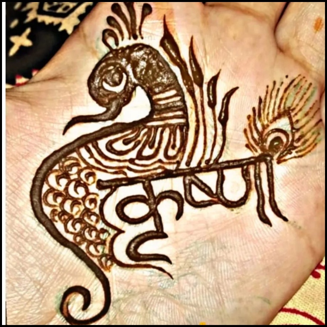 अगर आप कुछ सिंपल, लेकिन खूबसूरत मेहंदी डिजाइन तलाश रहे हैं, तो जन्माष्टमी के मौके पर आप हाथों पर भगवान श्रीकृष्ण का नाम लिखवा सकते हैं। आप अलग-अलग स्टाइल और डिजाइन में हाथों पर भगवान का नाम लिखवा सकते हैं। जन्माष्टमी के मौके पर यह आपको फेस्टिव लुक देगी और यह काफी डिसेंट भी लगेगी।