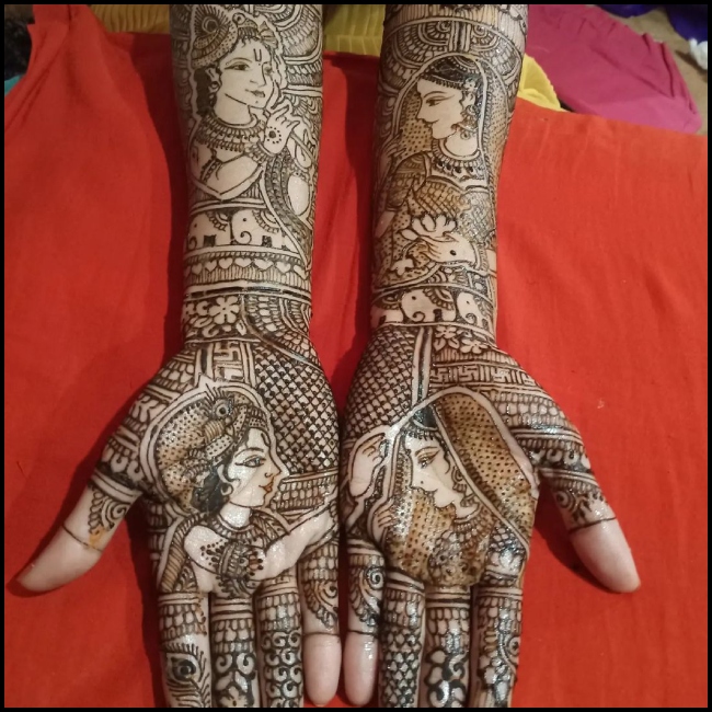 जन्माष्टमी का त्योहार राधा कृष्ण के बिना अधूरा है। अगर आप इस त्योहार के मौके पर मेहंदी लगाने का मन बना रहे हैं, तो राधा कृष्ण की डिजाइन वाली मेहंदी ट्राई कर सकते हैं। जन्माष्टमी के मौके पर यह मेहंदी आपको त्योहार में चार चांद लगा देगी और आपके हाथों की खूबसूरती भी बढ़ाएगी।