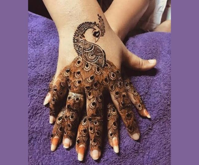 हाथों पर मोर पंख का ये डिजाइन भी जन्माष्टमी पर खूब जंचेगा। यकीन मानिए, ये इतना सिंपल है कि आपको इसे हथेली पर उतारने में मुश्किल से 10-15 मिनट ही लगेंगे।