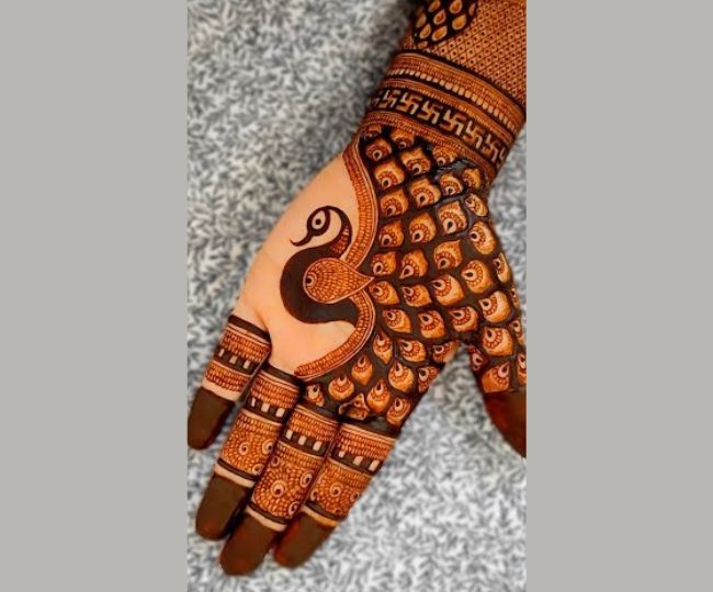 जन्माष्टमी पर हाथों की खूबसूरती बढ़ाने के लिए आप मेहंदी का ये मोर पंख डिजाइन भी चुन सकती हैं। इसे आप बैक हैंड या फिर हथेली दोनों ही तरफ आसानी से लगा सकती हैं। यह सिंपल के साथ बेहद क्लासी भी है, जो हाथों पर आसानी से बनाया जा सकता है।
