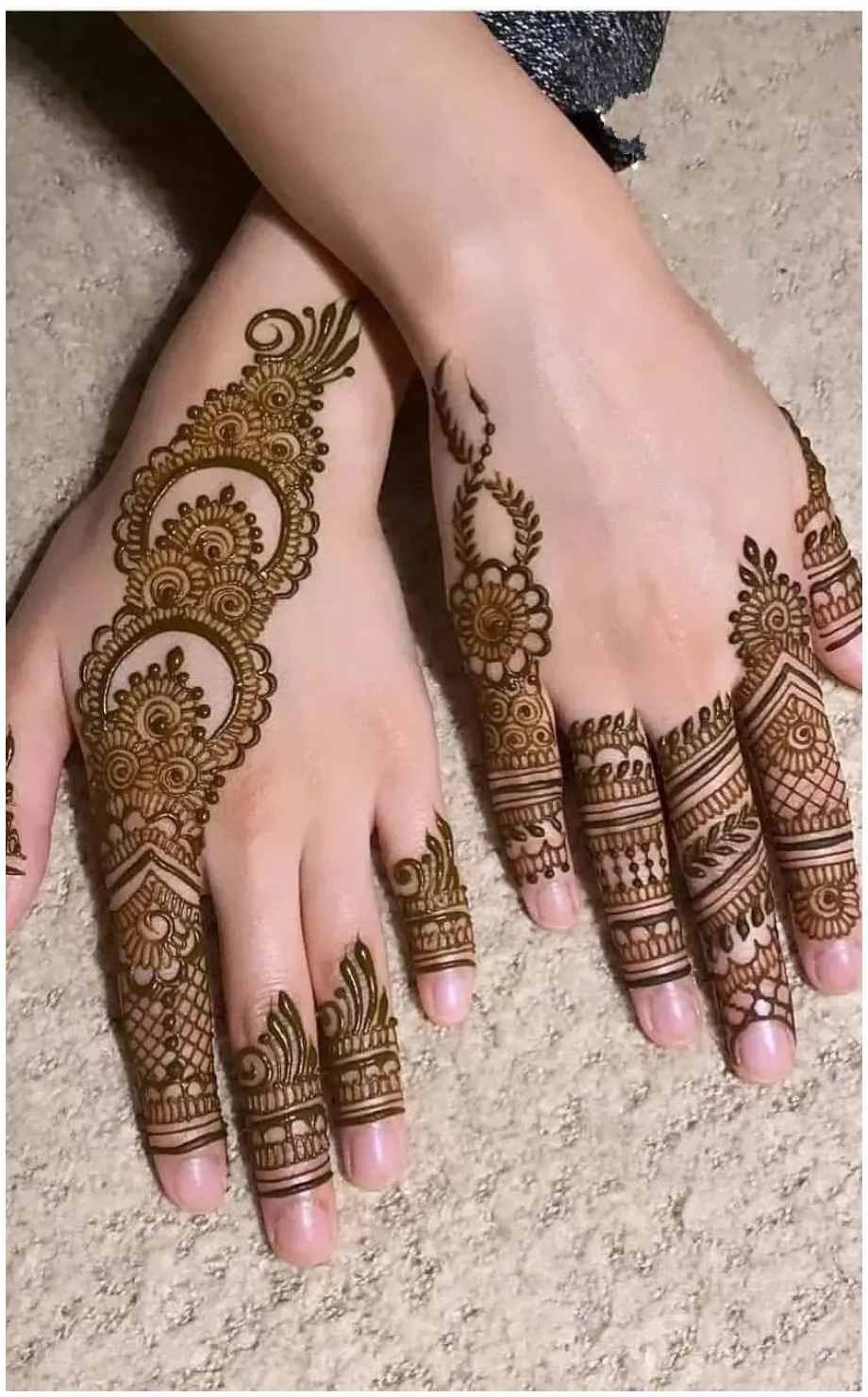 त्योहारों और शादियों में अरेबिक मेहंदी डिज़ाइन खूब पॉपुलर है। यह कम समय में लग जाती है और काफी संदुर भी लगती है।