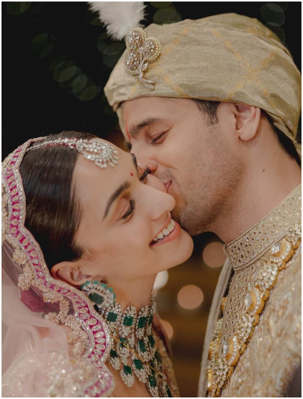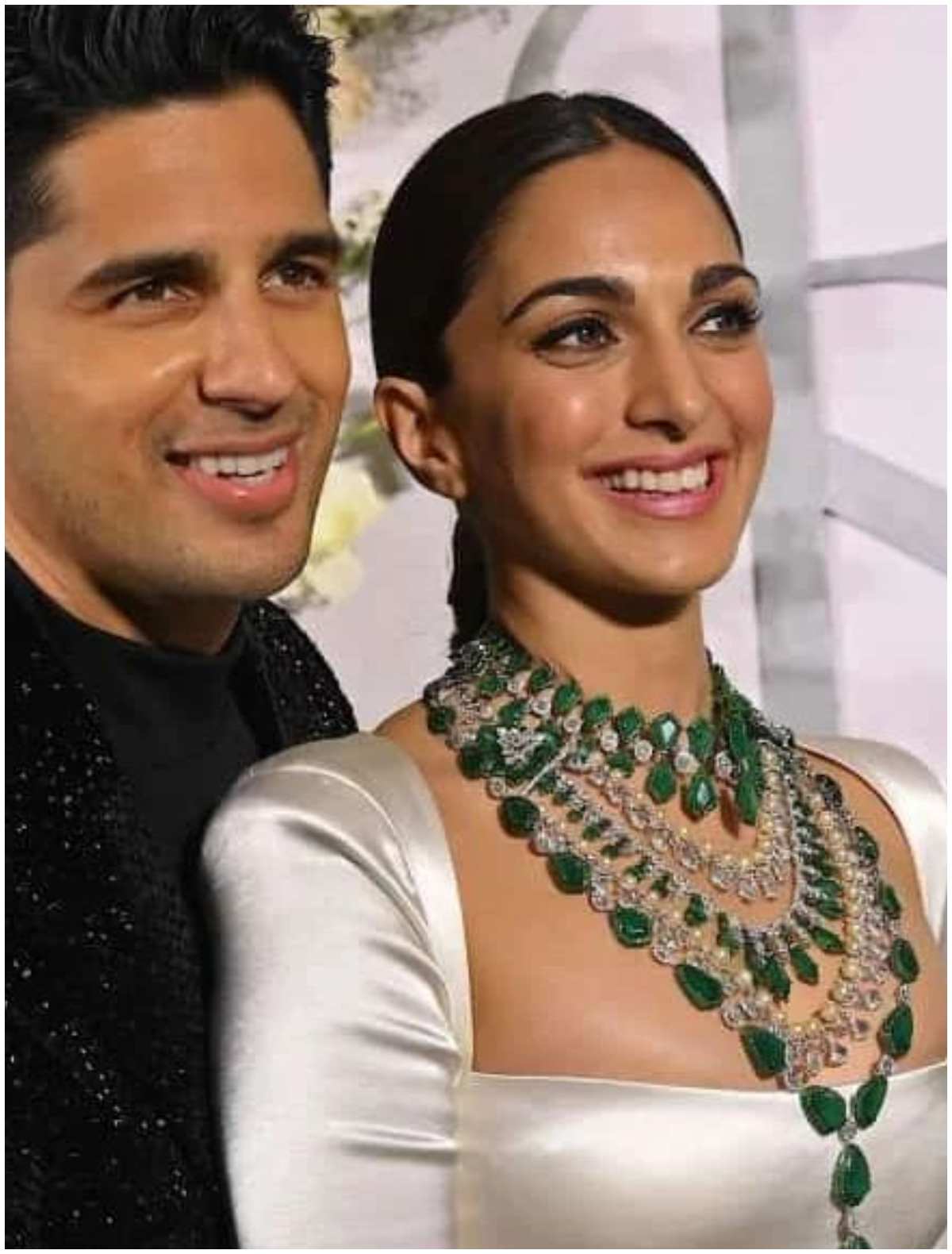 सिद्धार्थ और कियारा मीडिया के लिए खूबसूरत पोज़ दिए और साथ में बेहद प्यारे भी लग रहे थे। दोनों ने रिसेप्शन के लिए ब्लैक थीम चुनी। कियारा ने ब्लैक एंड वाइट ड्रेस चुनी, तो सिद्धार्थ ने ब्लैक शिमरी सूट। इन दोनों का कॉम्बीनेशन फिट था, लेकिन कियारा के ब्लैक एंड वाइट आउटफिट के साथ एमरेल्ड और डायमंड नेकलेस ने सभी नज़रें खींच ली थीं।