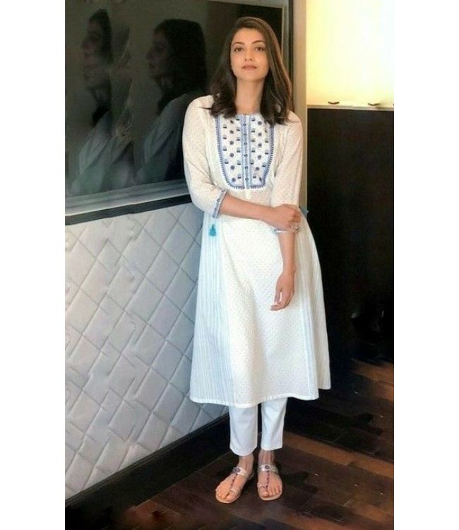अगर आप ट्रेडिशनल टच के साथ क्लासी दिखना चाहती हैं, तो चिकनकारी एम्ब्रॉयडरी वाला कुर्ता एक शानदार ऑप्शन है। यह आपके लुक को एक सॉफ्ट एलिगेंस देता है।