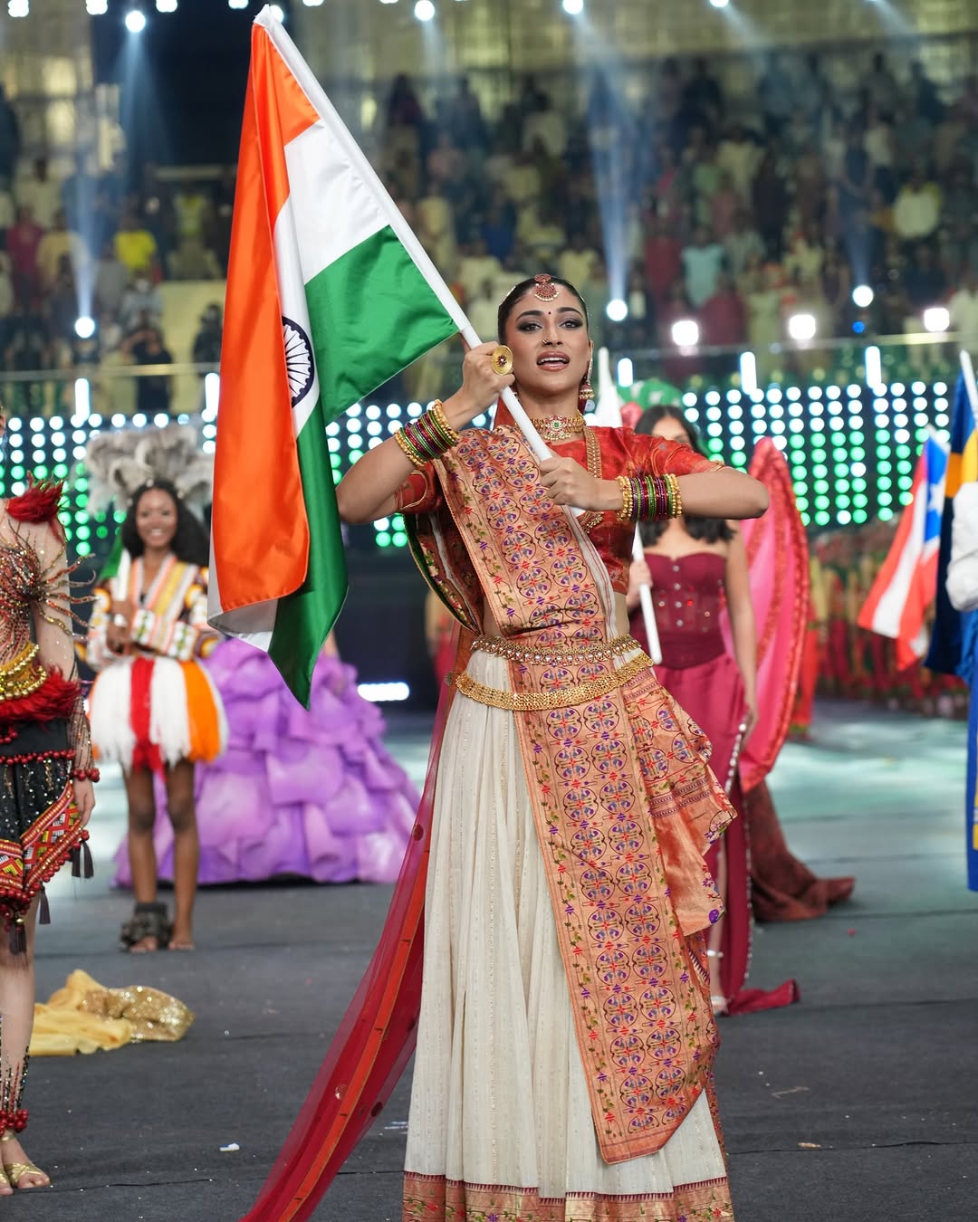 आपको बता दें कि इस प्रतियोगिता का आयोजन हैदराबाद के HITEX में हो रहा है। इसमें 110 देशों की ब्यूटी क्वीन ने हिस्सा लिया था। इन सबके बीच अगर किसी ने सभी का ध्यान अपनी ओर आकर्षित किया था तो वो नंदिनी गुप्ता ही हैं। नंदिनी ने पटोला लहंगा कैरी किया था। उन्होंने जब रेंप पर वॉक किया तो सभी की नजरें नंदिनी पर ही टिक गई। बड़ी शालीनता के साथ उन्होंने वाॅक किया और मॉडर्न डिजाइनर आउटफिट में स्टेज पर एक गहरी छाप छोड़ दी।