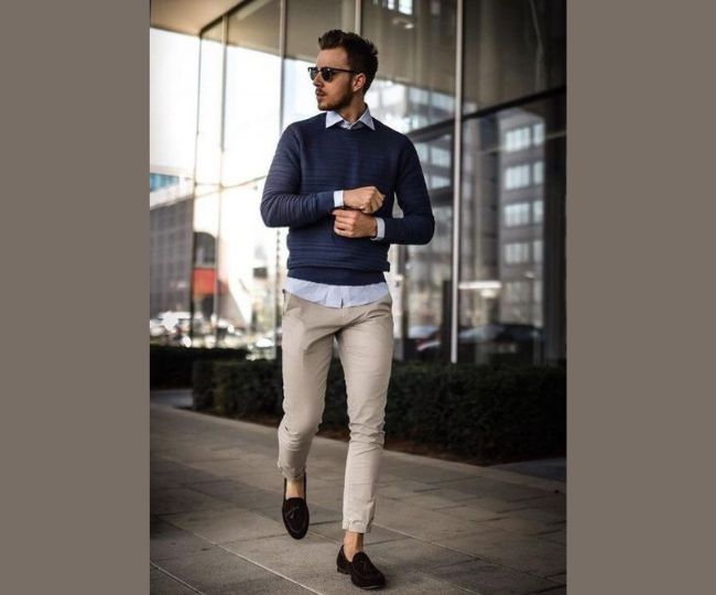 ठंड के मौसम में स्वेटर और जींस एक बहुत ही कंफर्टेबल और स्टाइलिश ऑप्शन है। आप किसी भी कलर का स्वेटर चुन सकते हैं, लेकिन ब्लैक, ग्रे या नेवी ब्लू कलर के स्वेटर सबसे ज्यादा पसंद किए जाते हैं। इसके साथ आप ब्लू या ब्लैक जींस और स्नीकर्स पहन सकते हैं।