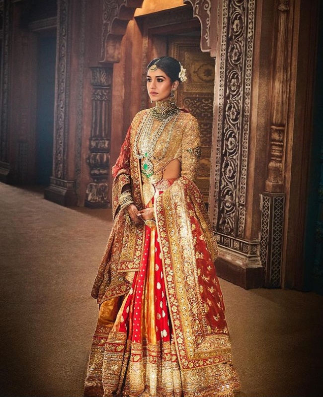 उनके इस आउटफिट का ब्लाउज सिर्फ गोल्डन रंग का ही नहीं, बल्कि इस पर असली सोने के करचोबी का वर्क था। यह कारीगरी पारंपरिक आभो और कच्छ, गुजरात की समृद्ध कपड़ा विरासत से प्रेरित है, जो 19वीं सदी में कलात्मकता को रिफेक्ट करता था। सोने के वर्क वाले इस ब्लाउज के साथ उन्होंने लाल रंग के मल्टी-पैनल बनारसी ब्रोकेड लहंगा पहना था। स्टाइलिस्ट रिया कपूर के मुताबित यह पहनावा भारत की शाश्वत सुंदरता के प्रति एक श्रद्धांजलि है।