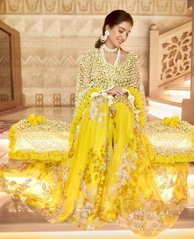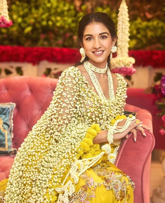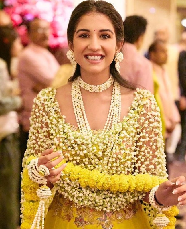 अपनी हल्दी सेरेमनी के लिए राधिका ने पारंपरिक पीले रंग का परिधान चुना, लेकिन इस आउटफिट की जिस खासियत ने लोगों का ध्यान अपनी तरफ खींचा वह थी राधिका की फूलों की चादर, जिसे उन्हें दुपट्टे की तरह लहंगे के साथ पेयर किया था। पीले रंग के लहंगा-चोली के साथ राधिका ने मोगरे के फूल से बना दुपट्टा पहना हुआ था, जिसमें वह किसी हुस्न परी से कम नहीं लग रही हैं। सोशल मीडिया पर उनका यह लुक सामने आते ही छा गया और हर कोई उनके इस लुक की तारीफ करता नजर आ रहा है।