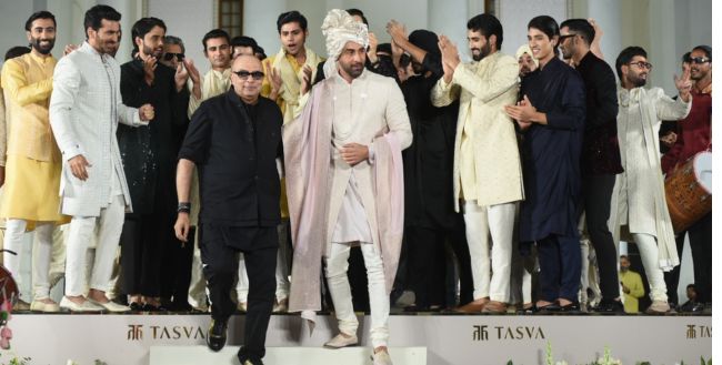 आपको बता दें कि इस फैशन शो के लिए रणबीर ने आइवरी रंग की शेरवानी और मैचिंग पैंट्स पहना। इसके साथ उन्होंने सिल्क की आइवरी रंग की पगड़ी पहनी, जिसपर कई मोती और स्टोन्स लगे हुए थे। इनसे उनकी पगड़ी काफी खूबसूरत लग रही थी और उनका लुक भी इसके कारण काफी रॉयल नजर आ रहा था। इसके अलावा, उन्होंने सफेद पर्ल्स का नेकलेस और आइवरी व पिंक रंग की मोजरी जूती पहनी थी। रणबीर ने हल्के गुलाबी रंग का रेशमी दुपट्टा भी कैरी किया।