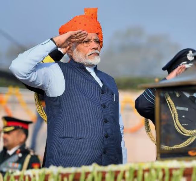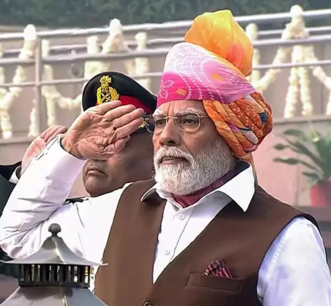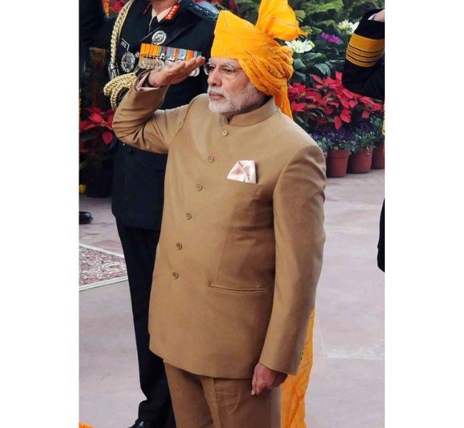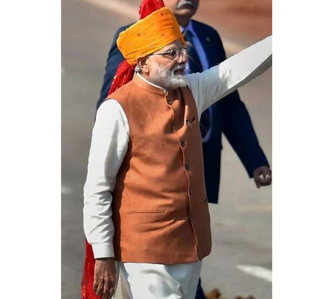 - 2023- साल 2023 में भी प्रधानमंत्री का लुक काफी अच्छा था। उन्होंने लाल, गुलाबी, हरे व पीले रंग का राजस्थानी फेटा पहना था। इसके साथ उन्होंने सफेद रंग का कुर्ता-पायजामा और काले रंग का बंद गले का कोट पहना था।