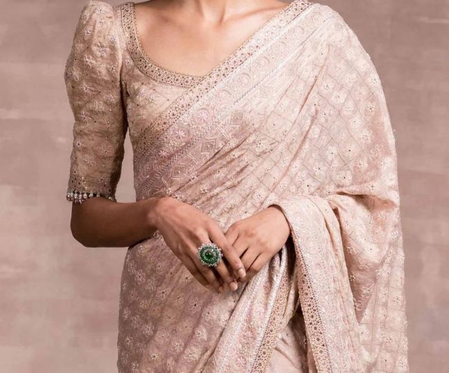 4) चिकनकारी साड़ी (Chikankari Saree)