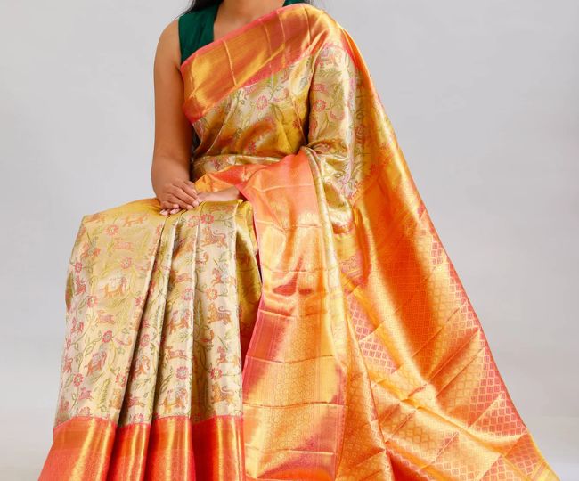 2) कांजीवरम साड़ी (Kanjivaram Saree)