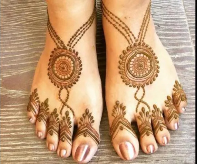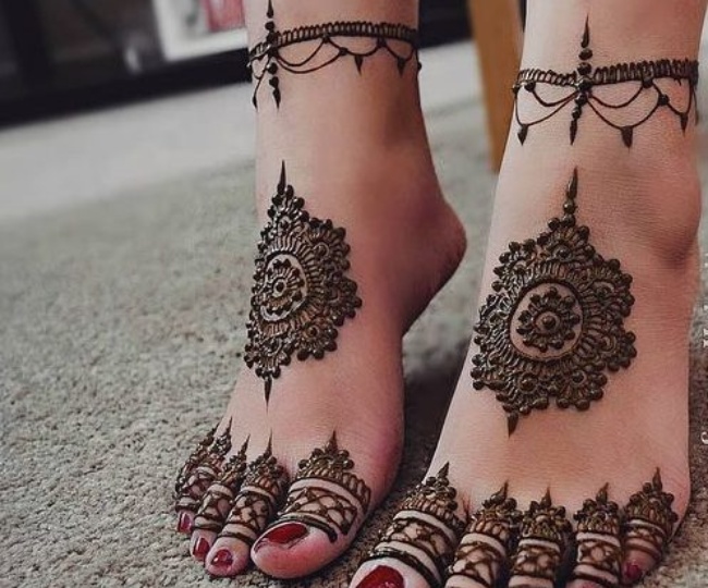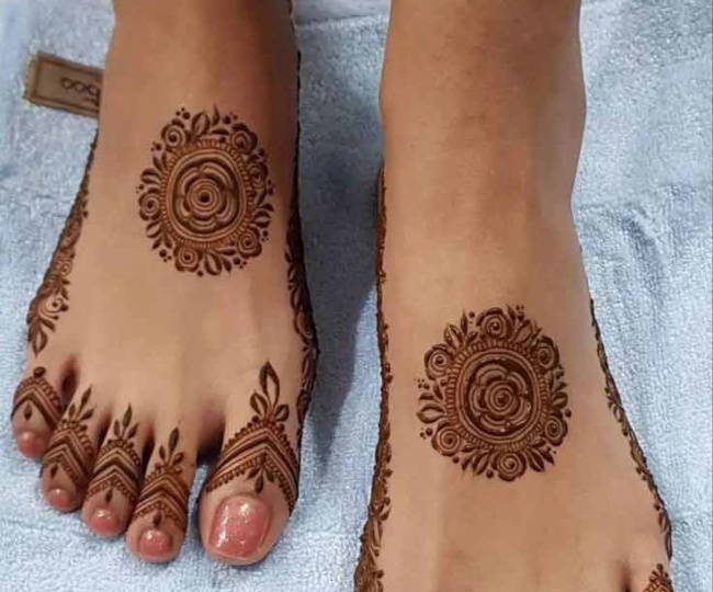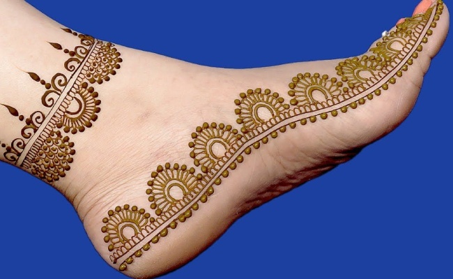 अगर आपके पास ज्यादा समय नहीं है और अगर आप पैरों को ज्यादा भरना नहीं चाहते हैं, तो ये सिंपल सी डिजाइन ट्राई कर सकते हैं। पैरों के किनारों पर आप आलता की तरह इस मेहंदी की डिजाइन को लगा सकते हैं। यह कम में लगने वाली मेहंदी की बेहद सिंपल, लेकिन खूबसूरत डिजाइन है।