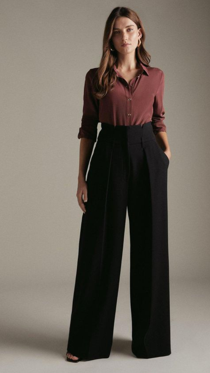 हाई वेस्ट वाइड लेग पैंट्स