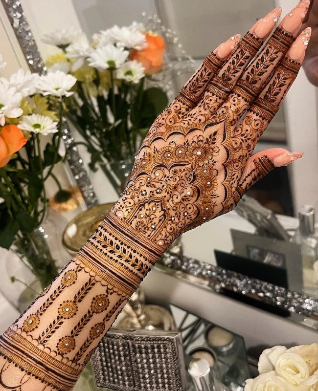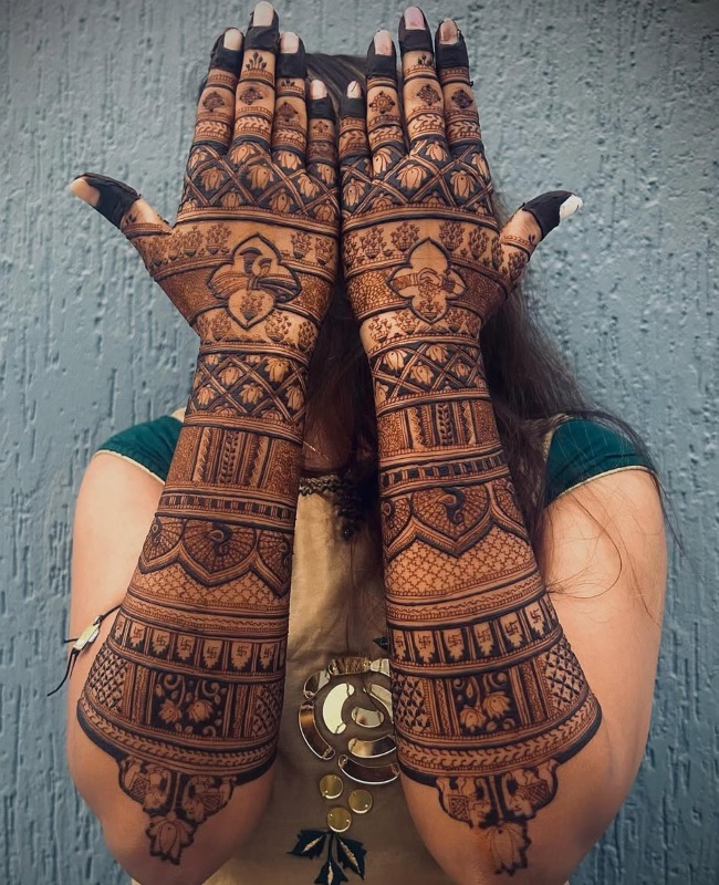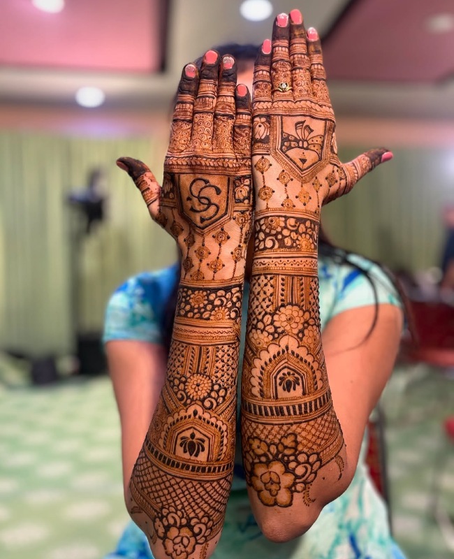 आमतौर पर ब्राइडल मेहंदी (Latest bridal henna patterns) के लिए फुल हैंड मेहंदी और हाथों में दूल्हा-दुल्हन बनाए जाते हैं। हालांकि, अगर आप इसमें भी कुछ नया ट्राई करना चाहते हैं, तो इस डिजाइन को फॉलो कर सकते हैं। मेहंदी की यह डिजाइन ब्राइड के हाथों पर खूब जंचेगी। यह एक फुल हैंड मेहंदी डिजाइन है, लेकिन यह आपको मिनिमल लुक देगी, जो इस वेडिंग सीजन आपके लुक में चार चांद देगी।