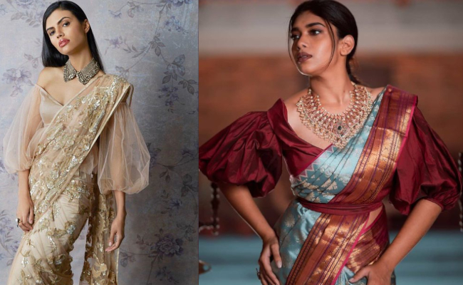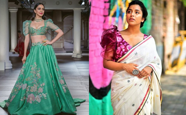 पफ स्लीव का ट्रेंड पुराना है लेकिन एक बार फिर इसका क्रेज देखने को मिल रहा है। जो फैशन गलियारों से लेकर ब्राइडल लुक तक में हिट हो रहा है। कुछ नया ट्राय करना चाह रही हैं तो पफ में शीयर फैब्रिक का इस्तेमाल करें। जो बहुत ही क्लासी लगेगा। इस तरह के ब्लाउज को आप साड़ी के अलावा लहंगे के साथ भी पहन सकती हैं।