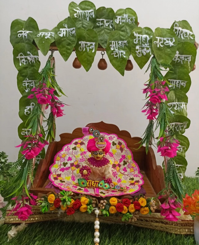 घरों में कोई न कोई शो प्लांट होता ही है। आप इन प्लांट्स की पत्तियों से भी झूला सजा सकते हैं। इसे थोड़ा और आकर्षित बनाने के लिए आप इन पत्तों पर भगवान कृष्ण के अलग-अलग नामों को भी लिख सकते हैं। इससे झूले की खूबसूरती और भी ज्यादा बढ़ जाएगी।