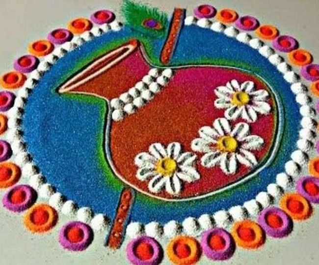 कान्हा के जन्मोत्सव पर आप दही-हांडी का ये शानदार डिजाइन भी ट्राई कर सकती हैं। इसे बनाना भी बेहद आसान है और यह देखने में भी काफी सुदंर लगता है। कम समय में रंगोली बनानी हो, तो ये डिजाइन एकदम बेस्ट है।