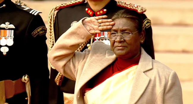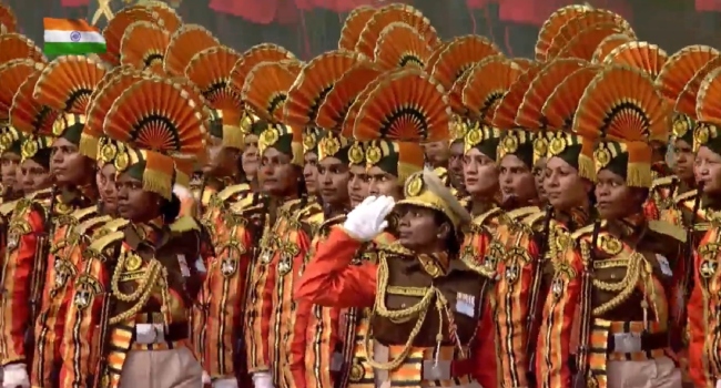 परंपरा के अनुसार राष्ट्रपति द्रौपदी मुर्मू ने ध्वजारोहण किया और इसके बाद भारतीय सैन्य बलों की विभिन्न टुकड़ियों ने उन्हें सलामी दी।