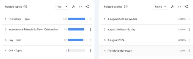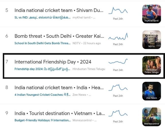 फ्रेंडशिप डे (Friendship Day Date) और इससे जुड़ी अलग-अलग चीजों के बारे में जानने के लिए लोग लगातार गूगल पर इसे सर्च कर रहे हैं। इसकी लगातार सर्चिंग का ही असर है कि अब तक गूगल पर फ्रेंडशिप डे को लेकर काफी ज्यादा सर्चेज की जा चुकी है।