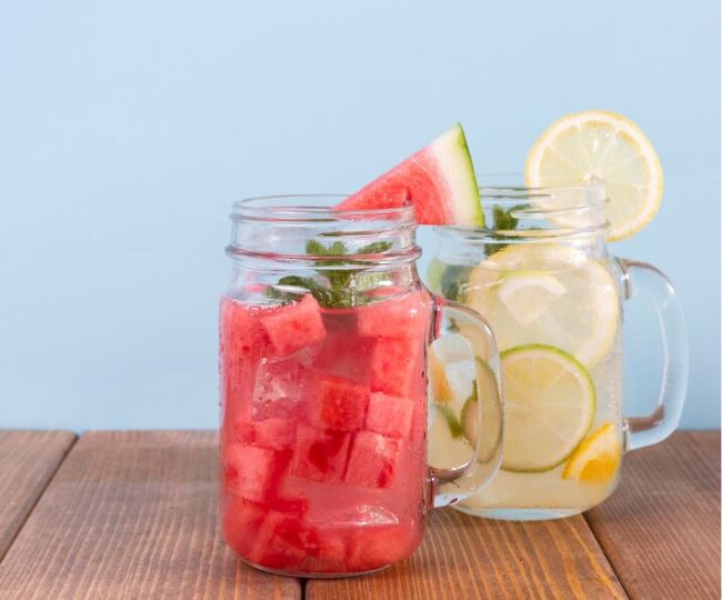 गर्मियों में तरबूज खाना कई लोगों को पसंद है। आप नींबू और वाटरमेलन की मदद से रिफ्रेशिंग कूलर तैयार कर सकते हैं। इससे शरीर में इलेक्ट्रोलाइट्स की कमी तो दूर होगी ही, साथ ही एनर्जी भी मिलेगी। इसे बनाने के लिए आपको तरबूज के टुकड़े लेकर इसके बीजों को निकाल लेना है और फिर इसे ब्लेंड करने के बाद छानकर एक गिलास में निकाल लेना है। अब आप इसमें नींबू का रस एड करें और फिर चीनी और बर्फ मिलाकर ठंडा-ठंडा पिएं।