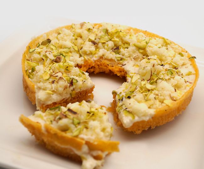 - इसके बाद घेवर को कुछ देर तक चाशनी में डुबोकर रखें और इसपर रबड़ी की लेयर फैला दें।