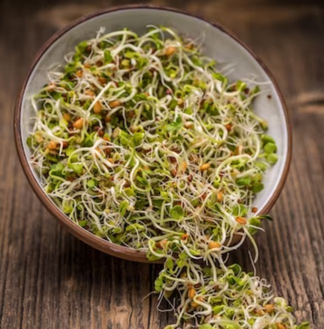 अंकुरित दाल, मूंग, सलाद सामग्री से तैयार ये अंकुरित सलाद फाइबर, प्रोटीन और विटामिन से भरपूर होता है। यह कम समय में तैयार होने वाली एक टेस्टी डिश है, जो सेहत को काफी फायदा पहुंताची है।