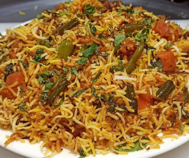 - अब तैयार है आपकी लाजवाब वेज बिरयानी।