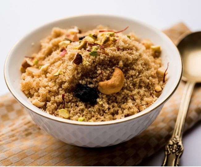 - सामग्री: सूजी, घी, दूध, चीनी, केसर